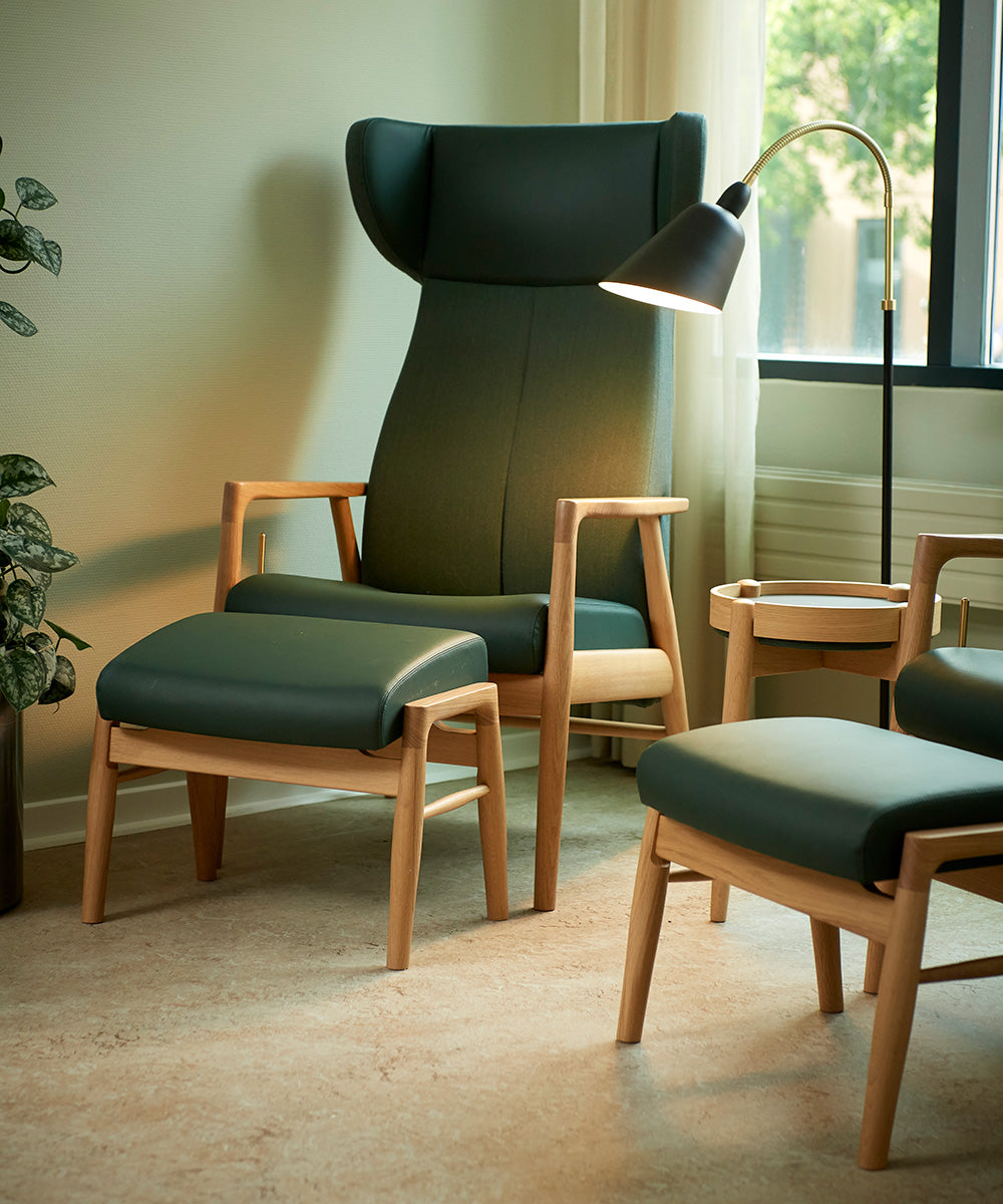 Several of our armchairs are equipped with adjustable lumbar support, which ensures that you sit naturally – without having to compensate. This provides peace of mind for the body and relieves the entire musculoskeletal system for longer periods of time.