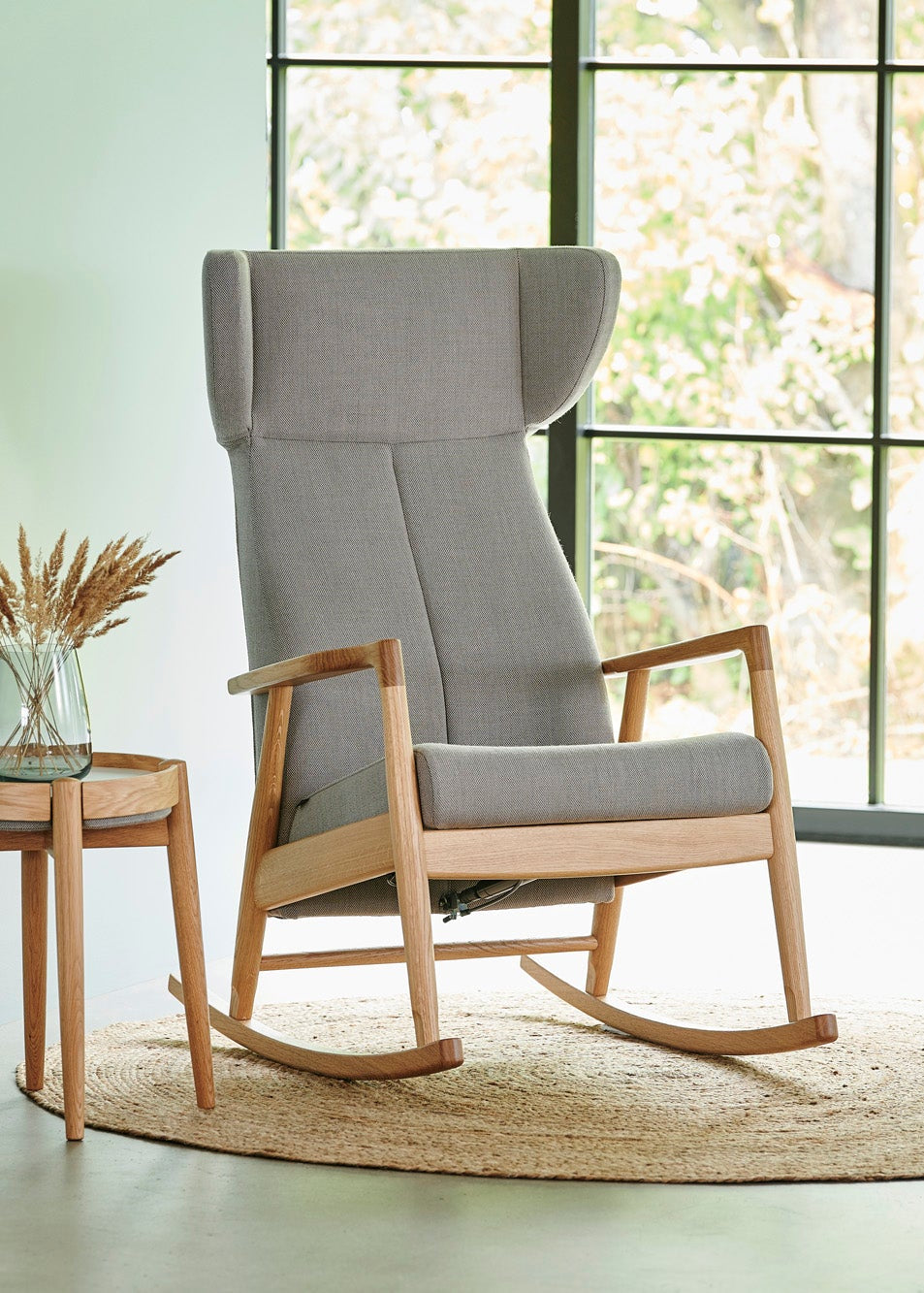 The frame of the rocking chair is made of solid oak - where you can choose from several different surface treatments (see below for more info) and you can choose from a wide selection of quality textiles, leather and artificial leather in a myriad of different colours.