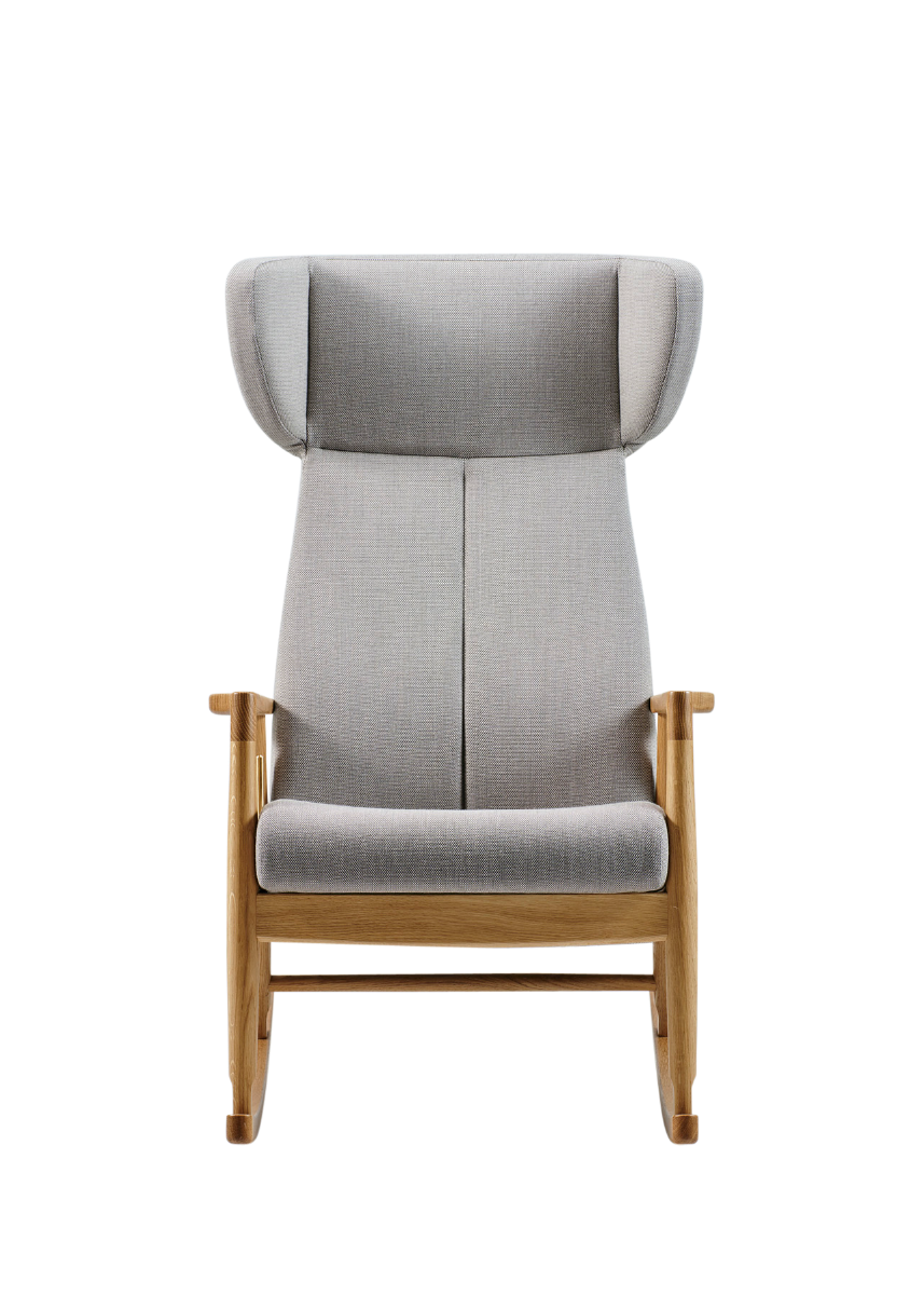 The Nobel series recliners are complemented by the rocking chair 8950, which has ears and the noble expression of whose slender back is based on Nordic features and Danish design style. The frame is made of solid oak, has round edges and beautiful plastered arms, which provide a good grip when getting in and out of the chair.