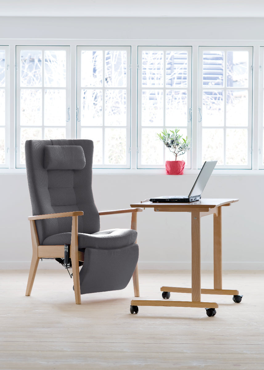 Plus 5080 is a comfortable recliner with built-in footrest, which is operated with a hand control for maximum relaxation. The chair is hand-built at Farstrup's Danish furniture factory according to your measurements, and both upholstery and sewing are done by hand. Danish design and craftsmanship at its best.