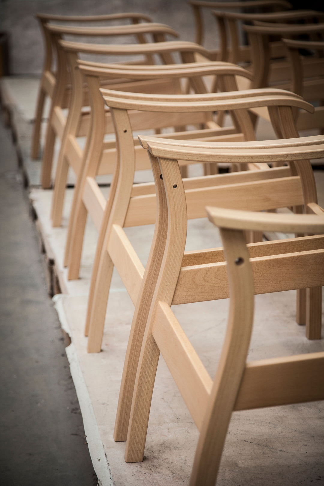 Finally, before the wood is sent on, the wooden parts are sanded by hand so that they have a nice and smooth surface – ready to be assembled, glued and doweled into a chair.